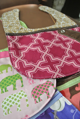 Bibs.  These are a little big for a newborn, but cute and will be used soon enough.  I used the pattern from Chickpea Sewing Studio.  Most have flannel as the back and I used snaps for all of them.